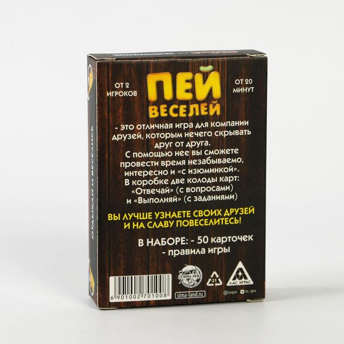 Купить игра для компании "пей веселей" 50 карт от 180 руб. с доставкой до пункта выдачи в Шацке. Интернет магазин ДекаМаркет. Оплата при получении.